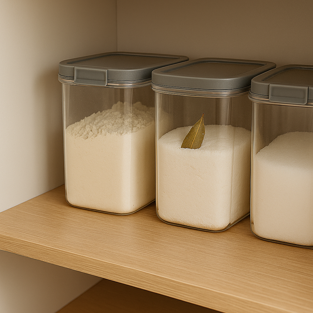 밀가루, 설탕, 소금을 사용한 후 원래 포장 그대로 두면 습기와 벌레에 노출되기 쉽습니다.