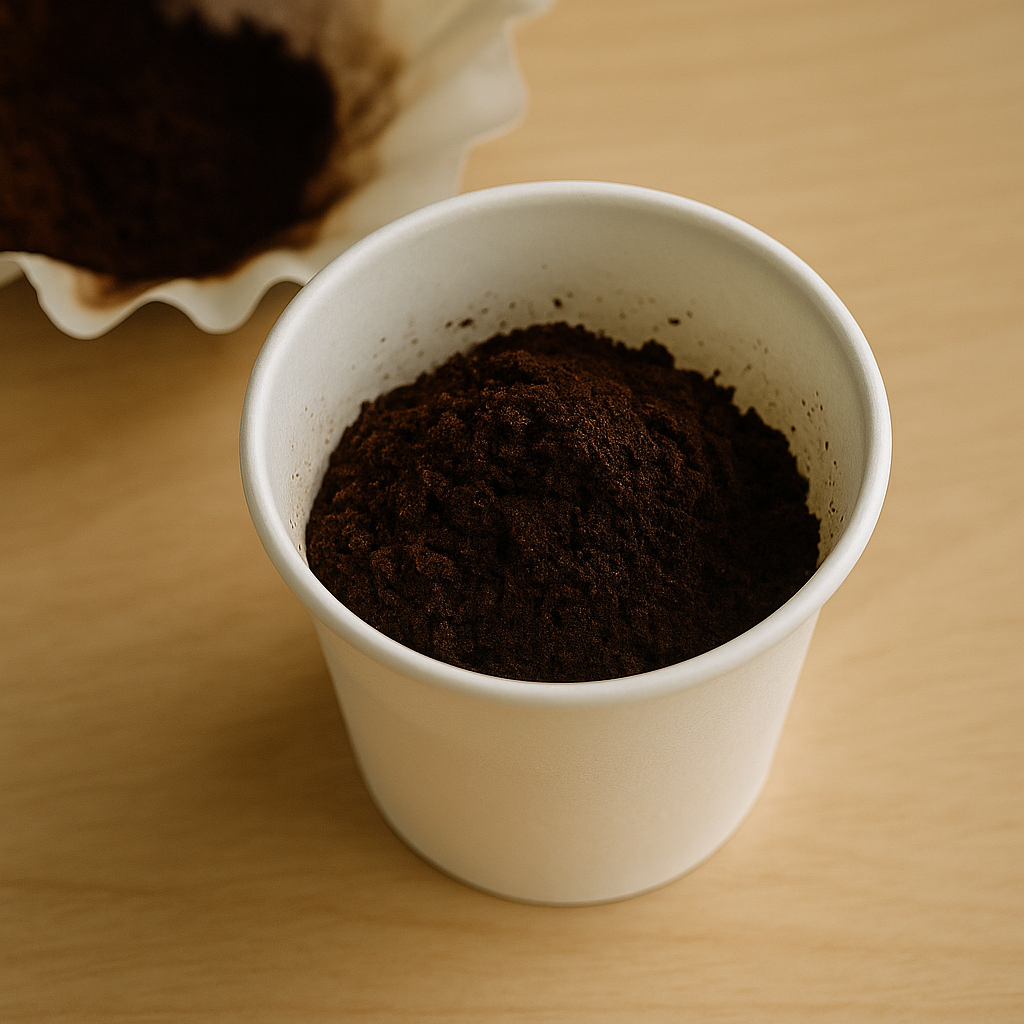 종이컵에 가득 담긴 커피 찌꺼기의 모습